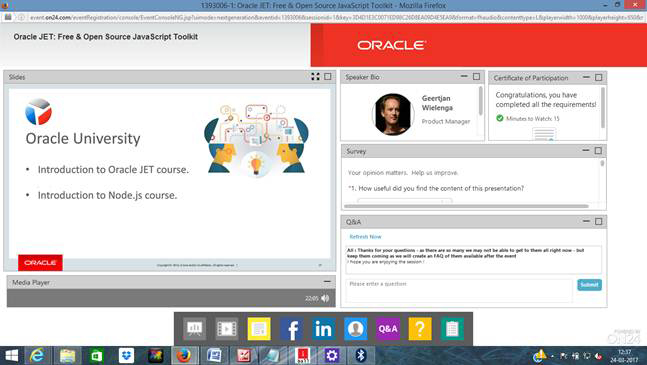 Ms. Perside Foster (Technical Consultant, Oracle HCM Cloud) gave a presentation on “Internet of Things”. Her presentation started with an introduction to IOT. She introduced the participants with the basic methodology of IOT. She discussed the applications of Internet of Things. She stated that IOT is immensely important. Internet of Things represents the next evolution of the Internet, taking a huge leap in its ability to gather, analyse, and distribute data that we can turn into information, knowledge, and, ultimately, wisdom. She further briefed the participants on how to build IOT based products and services. She described few physical tools that are required for creating an IOT-based product. She gave a gist of Arduino Programming. |