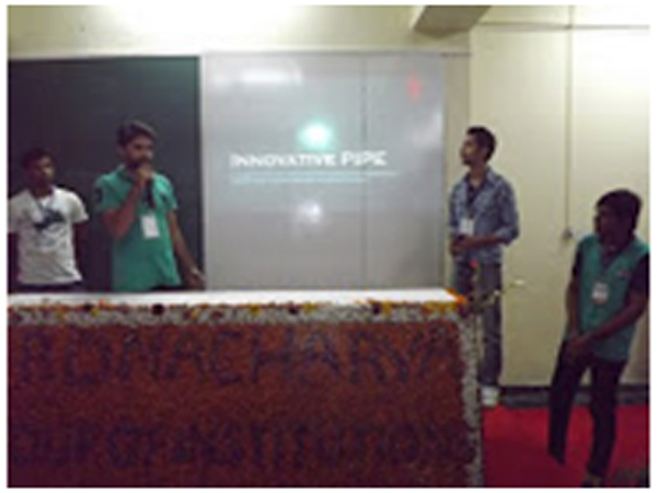 The event started on 17th September, 2014 at 9:00 A.M. with inauguration ceremony. The Resource persons from SPEED-IUCEE were Mr. Rohit Kandakatla, President SPEED India, Mr. Shivay Negi, Internal Affairs Officer – SPEED India and Mr. Vinesh Raja, External Affair Officer – SPEED India.Prof TPN Singh, Advisor (R&D) and convener of the program welcomed the guests and explained the objectives of the workshop to the students and emphasized on the wonders of technology and diffusive innovation taking place all over the world. Every student should vie to be a part of the present day technology explosion. Young persons of all ages are the architect of path-breaking innovations worth emulating. Dr. M. S. Murali, Directorgreeted the resource persons and exhorted the students to participate in the workshop in full measure so as to draw maximum leverage.
