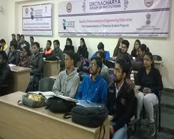 QEEE session on “Software Process and Management - Software Engineering” was organized by IIT, Madrasunder D2S (Direct to Student) Program at Dronacharya Group of Institutions, Greater Noida through ICT on 24th, 25th & 27th January 2017. The session was conducted by Prof. Rajib Mall, IIT Madras. Ms. Shalini Sharma, and Ms. Preeti Chawlacoordinated the session at DGI, Greater Noida. 26 Students from B. Tech (CSE/IT) attended the session. |