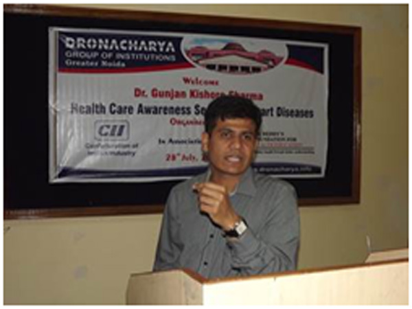 Dr. Gunjan Kishore Sharma,MBBS DNB (Medicine & Cardiology) with 10 Years of experience, having publicationin indexed Journal like Indian Heart Journal and Special Interest in Preventive Cardiology and Noninvasive Cardiology conducted the session. Dr. Sharma is currently working as a Consultant Clinical and Non Invasive Cardiology and Internal Medicine at Yatharth Hospital, Greater Noida.. The event began at 2:00 PM with the floral welcome of Dr. Sharma by Prof. M.S. Murali Director, DGI Greater Noida. |