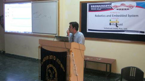 Workshop on Robotics & Embedded Systems for achieving excellence in management was organized by Mechanical Engineering Department at Dronacharya Group of Institutions, Greater Noida on 25th Sept. 2013. The workshop was attended by 63 students of II & III year Mechanical Engineering Department along with faculty member.