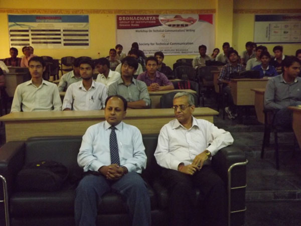 Dronacharya Group of Institutions Greater Noida organized a one day Workshop on Technical Writing/ Communication on 28th September 2013. The workshop was conducted by Mr. Rajeev Jain, Education and Scholarship Manager Society for Technical Communication. The objective of the workshop was to bridge the gap between Academia and Corporate and make the students Industry ready. The H.O.Ds, faculty members, and the students attended the workshop.