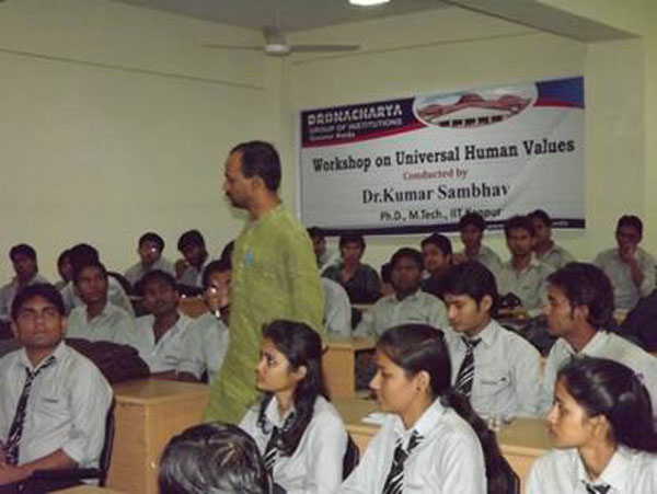 MBA Department of Dronacharya Group of Institutions Greater Noida organized a One Day Workshop on “Universal Human Values” on 11th October 2013. The workshop was conducted by Dr. Kumar Sambhav (Ph.D., M.Tech. - IIT Kanpur). Students of MBA, MCA and B. Tech attended the program. The objective of the workshop was to promote ethics and human values which are required to meet the needs of the modern crises. |